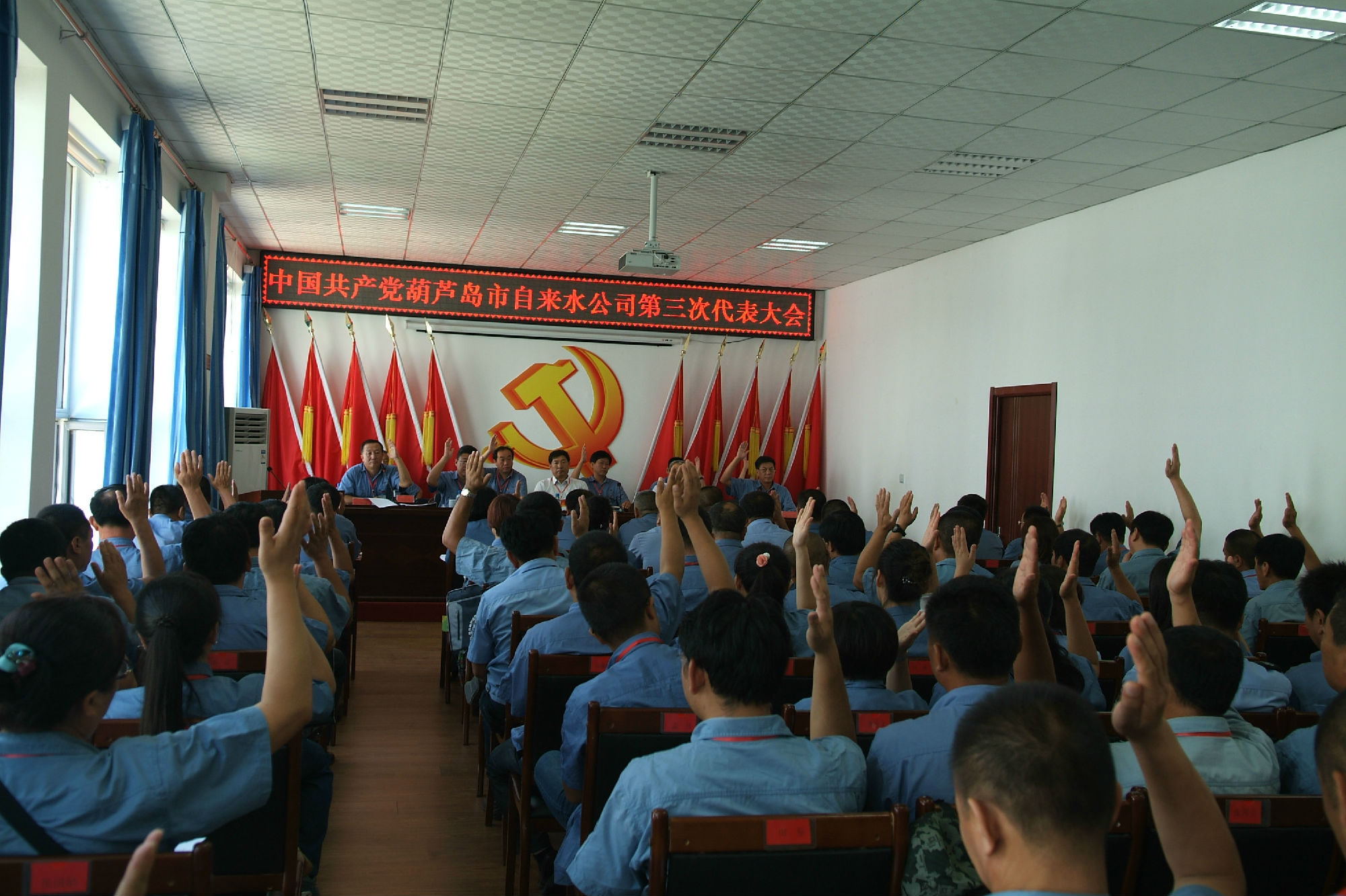 上午9時(shí),大會(huì)在雄壯的國(guó)歌聲中拉開(kāi)帷幕。公司黨委書(shū)記張旭濱代表上屆黨委做了題為《凝心聚力真抓實(shí)干 為實(shí)現(xiàn)供水事業(yè)新的發(fā)展而奮斗》的工作報(bào)告,全面回顧了公司近年來(lái)黨委開(kāi)展的各項(xiàng)工作及取得的成績(jī),提出工作不足,并對(duì)下屆黨委寄予厚望。全體代表在認(rèn)真聽(tīng)取第二屆黨委工作報(bào)告以后,以舉手表決方式,一致同意通過(guò)黨委工作報(bào)告。