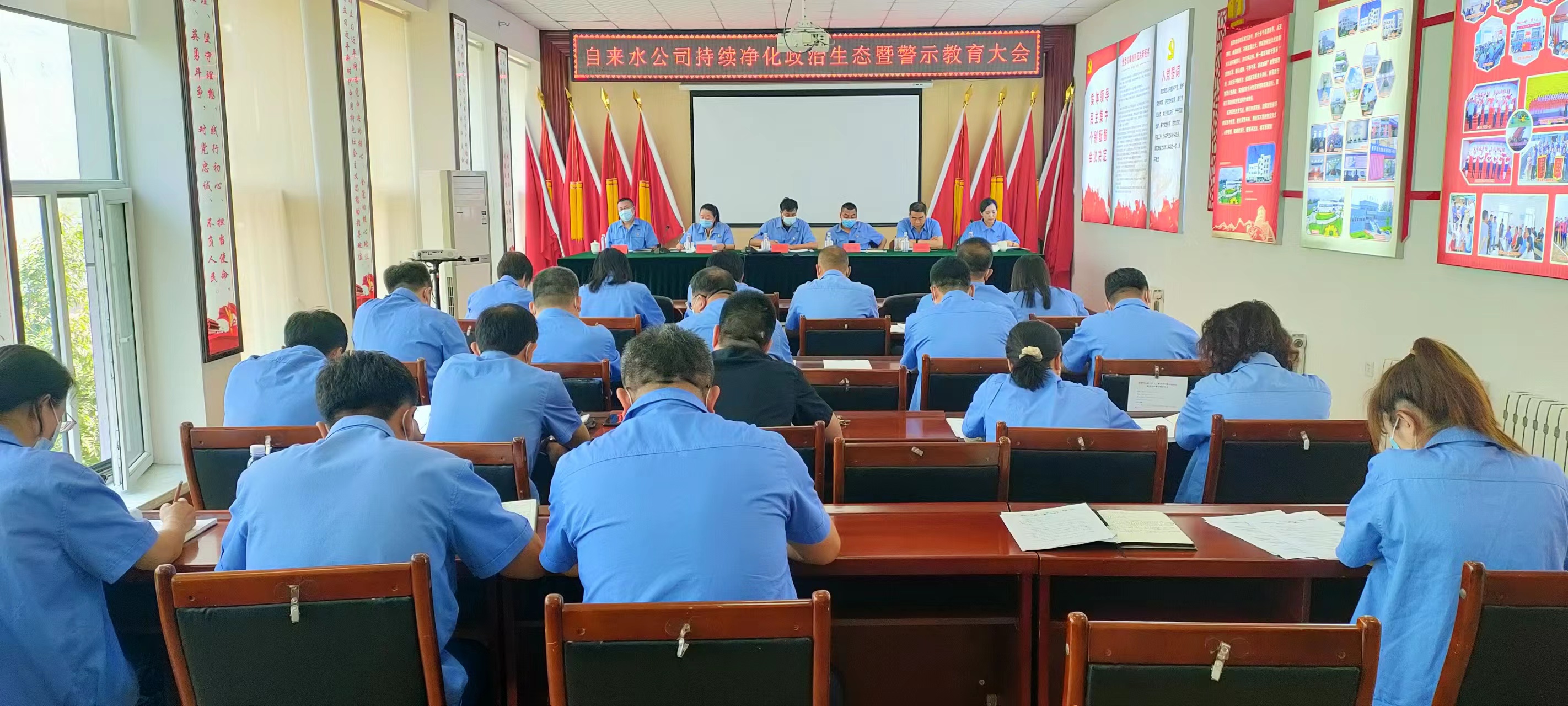 為深入貫徹省、市持續(xù)凈化政治生態(tài)推進(jìn)會(huì)暨警示教育大會(huì)精神,教育和引導(dǎo)黨員干部始終繃緊紀(jì)法之弦,筑牢“不想腐”的思想堤壩。6月16日,市自來(lái)水公司召開(kāi)黨委中心組理論學(xué)習(xí)暨持續(xù)凈化政治生態(tài)警示教育大會(huì),持續(xù)鞏固提升風(fēng)清氣正政治生態(tài),營(yíng)造良好干事創(chuàng)業(yè)氛圍。黨委書記張旭濱主持會(huì)議,黨委班子成員、各支部書記、中層干部參加會(huì)議。